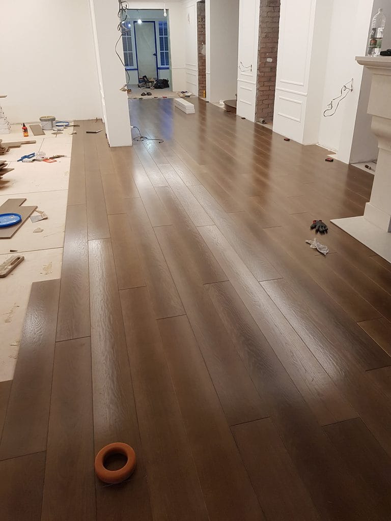 Монтаж доски производился на немецкий силановый клей Wakol ms 230, это жесткоэластичный клей на основе силанполимеров. Обладает повышенной адгезией и абсолютно экологически чистый. Площадь укладки составила 140 м2.