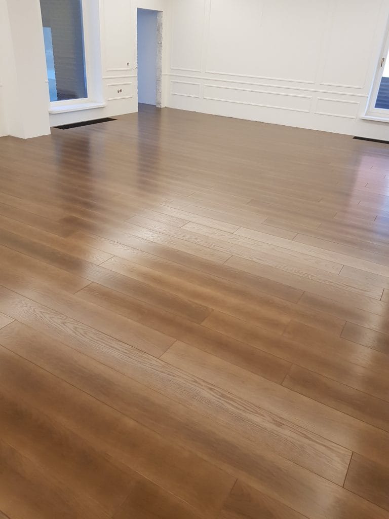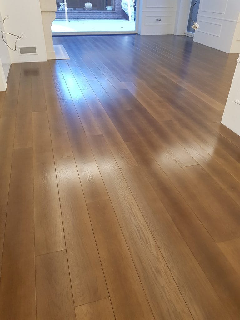 Здравствуйте, сегодня предлагаю Вам посмотреть на наш проект с индивидуальным выкрасом паркетной доски. Насыщенный коричневый цвет + несколько слоев шелковистого лака. Доска шириной 185 мм в сортировке селект.