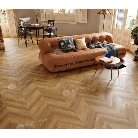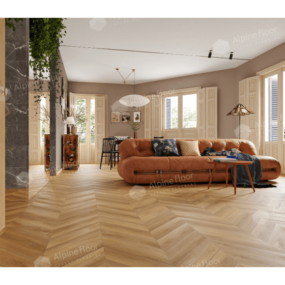 - Легкость установки: Паркетные планки Alpine floor Chevron Alpine легко устанавливаются благодаря замковой системе соединения, что позволяет значительно сократить время укладки и затраты на профессиональную укладку.