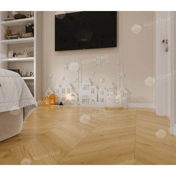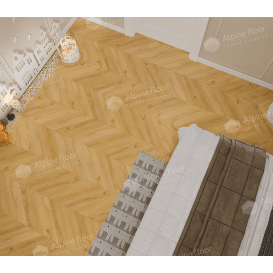 - Легкость установки: Паркетные планки Alpine floor Chevron Alpine легко устанавливаются благодаря замковой системе соединения, что позволяет значительно сократить время укладки и затраты на профессиональную укладку.