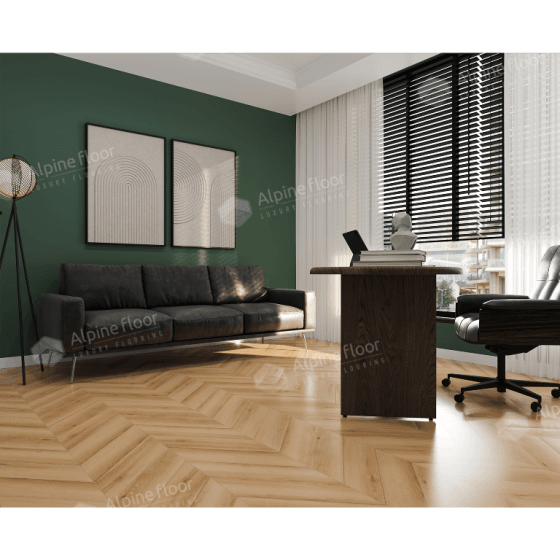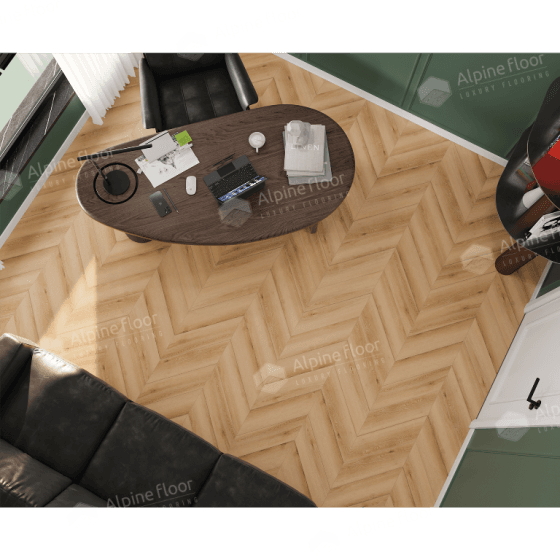 - Легкость установки: Паркетные планки Alpine floor Chevron Alpine легко устанавливаются благодаря замковой системе соединения, что позволяет значительно сократить время укладки и затраты на профессиональную укладку.