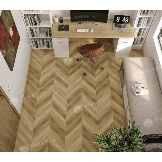 - Легкость установки: Паркетные планки Alpine floor Chevron Alpine легко устанавливаются благодаря замковой системе соединения, что позволяет значительно сократить время укладки и затраты на профессиональную укладку.