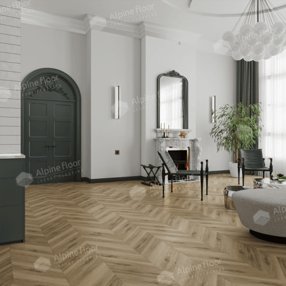 - Легкость установки: Паркетные планки Alpine floor Chevron Alpine легко устанавливаются благодаря замковой системе соединения, что позволяет значительно сократить время укладки и затраты на профессиональную укладку.